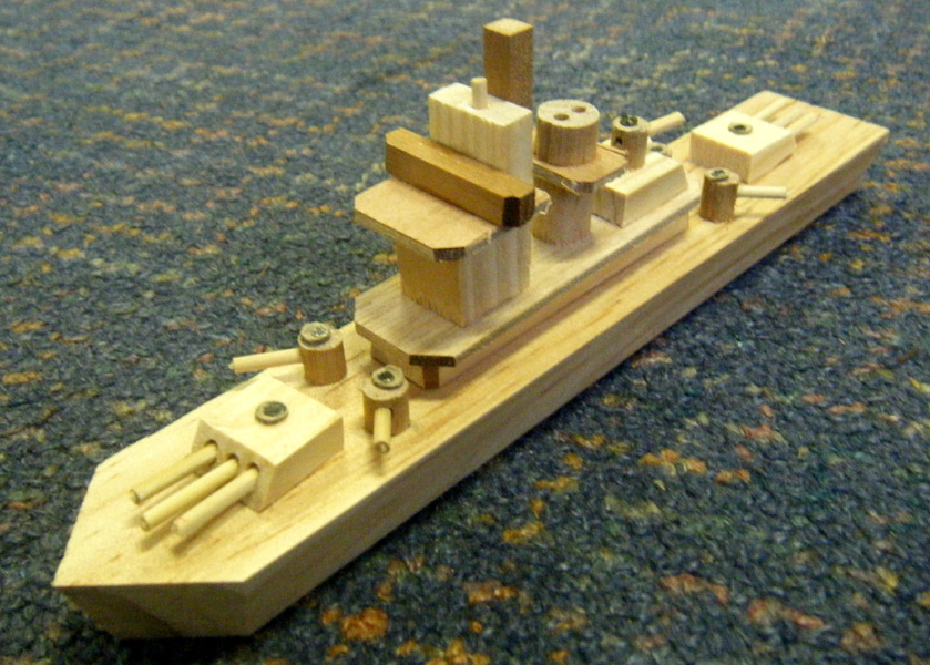 Peter has received a number of requests from the younger children at the school to make battleships for them. After doing some research on it he found that the simplest type to make was the convenient WWII Pocket Battleship. And he was able to use up numerous timber scraps for the superstructures.